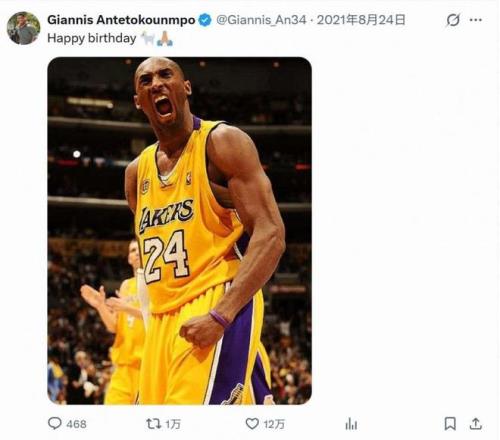 而唯一一条不在此范围(家人、荣誉及赞助商广告)的是他在X上于2021年科比生日当天发布的内容——祝福科比生日快乐。