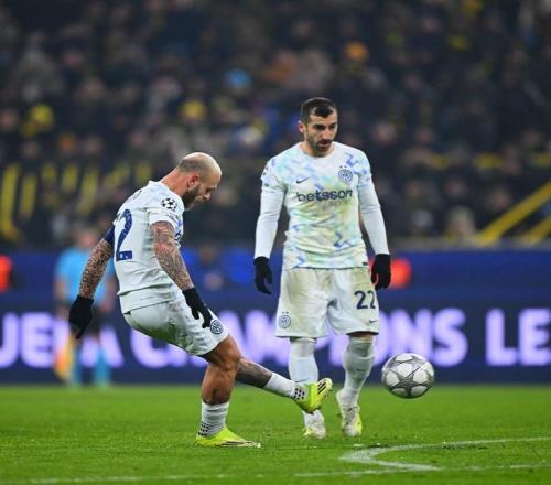 自三冠王赛季的斯内德以来,国米首次欧冠客场打进直接任意球