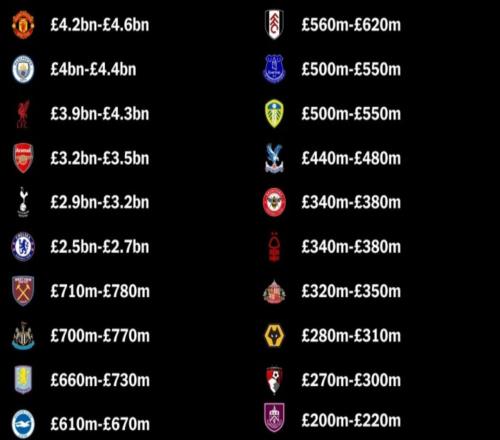 12月27日,TA发布了英超各支球队的估值情况,这份榜单由TA查看了英超各家俱乐部的财务情况,并且综合了相关数据,其...